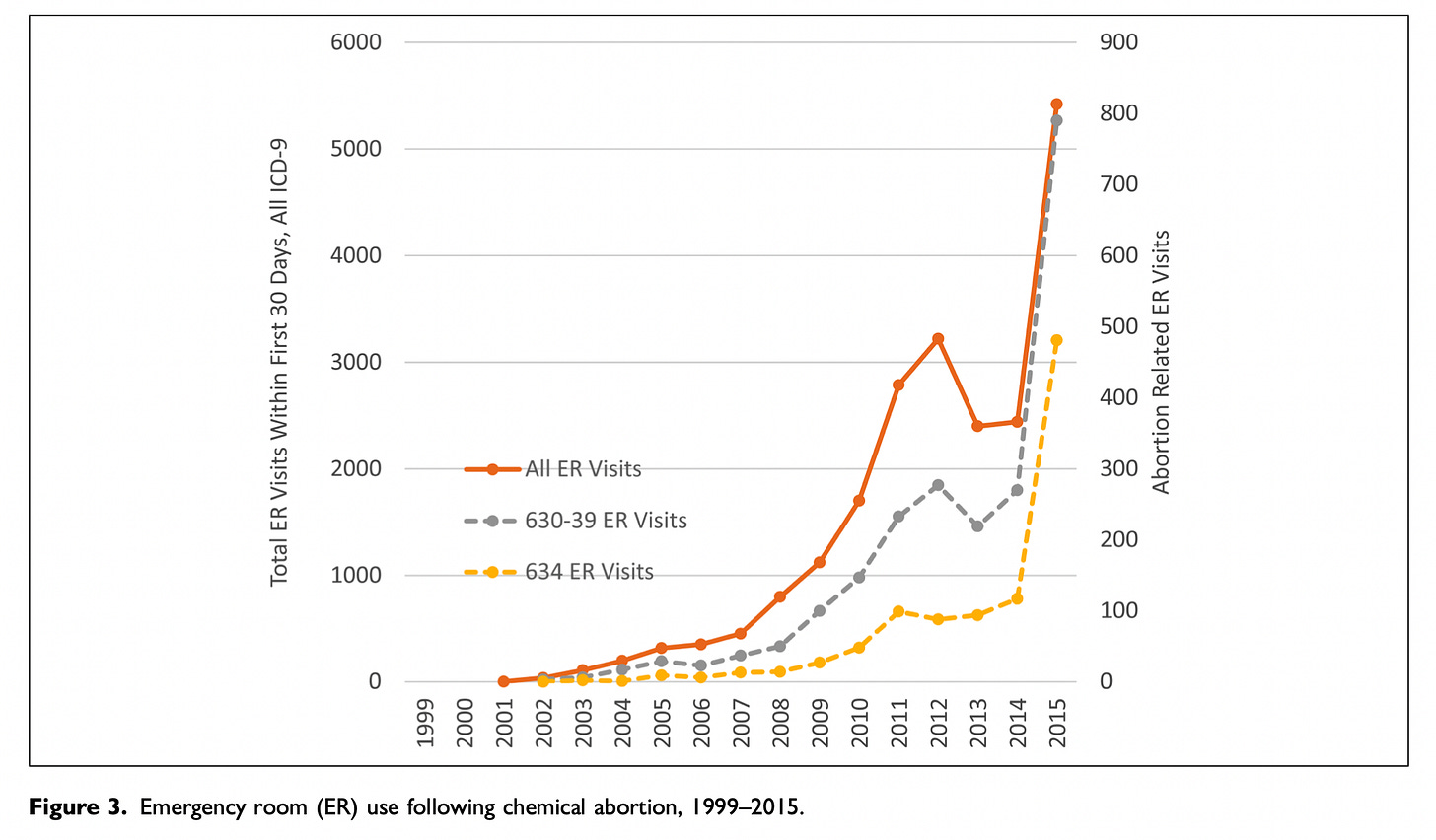 In their article, Studnicki and colleagues say this about the two figures: "The steeper growth in total and abortion-related ER visits for mifepristone abortions are apparent in the comparison of Figure 2 (surgical) and Figure 3 (chemical)."