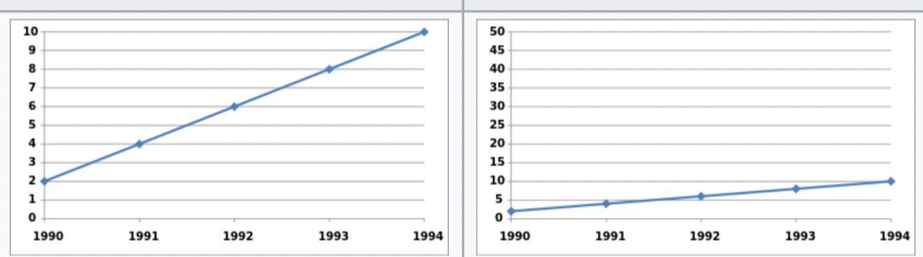 Let's suppose too that you haven't been very successful, and so you decide to apply for other kinds of jobs. Since you want to show prospective employers that you've been a good salesperson, you present them with the figure on the left below. (I downloaded these graphs from Wikipedia, so we will also need to suppose that it's 1995.)